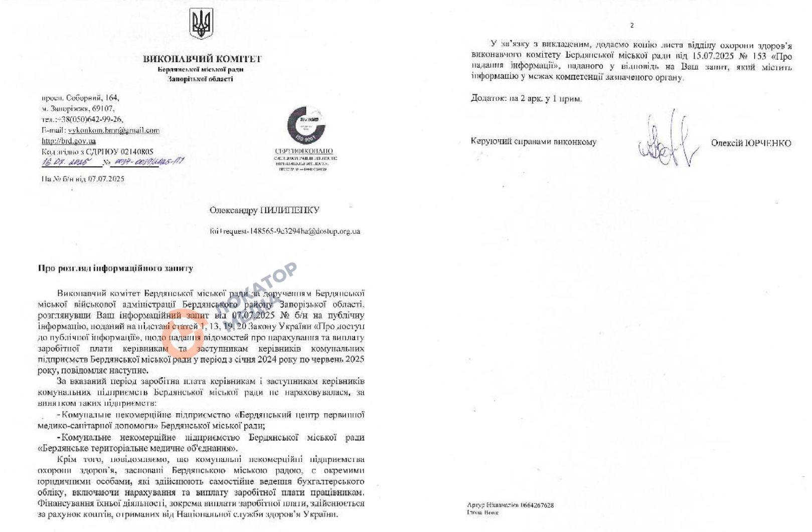 З початку 2024 року керівництво лише двох комунальних підприємств Бердянської міськради отримує зарплати. Це «Бердянський центр первинної медико-санітарної допомоги» та «Бердянське територіальне медичне об’єднання».