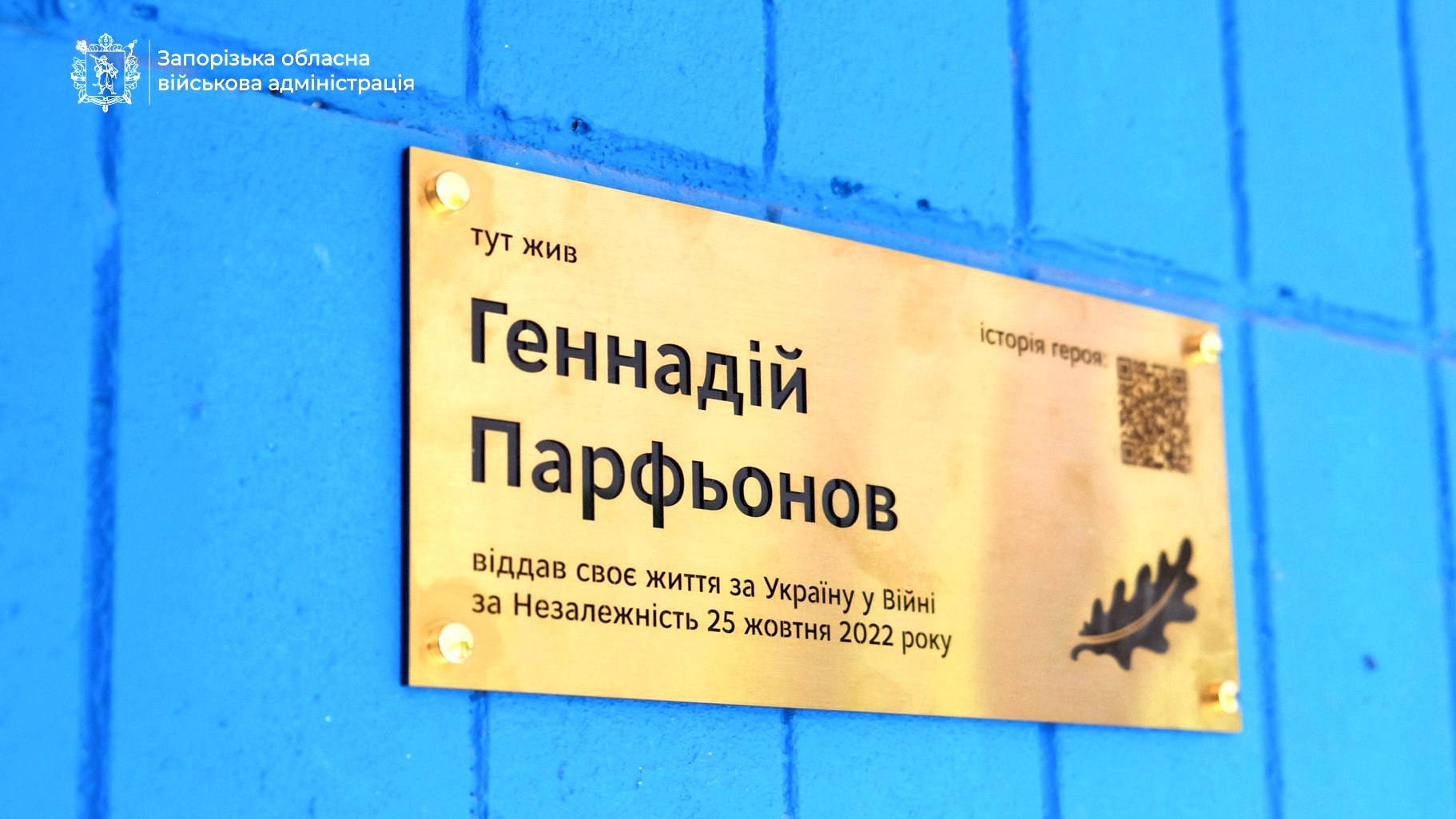 Перша з дошок встановлена на честь молодшого сержанта ЗСУ Геннадія Парфьонова. Він родом з Мелітополя, працював пекарем та кухарем, з початком повномасштабного вторгнення пішов на фронт, брав участь у боях за Северодонецьк та Авдіївку. Геннадій загинув 25 жовтня 2022 року під час мінометного обстрілу. Його посмертно нагородили орденом «За мужність» ІІІ ступеня.