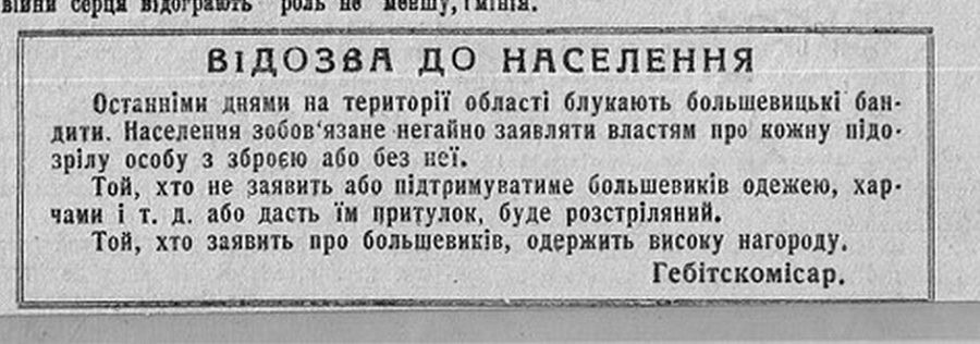 В Бердянске проводилась и активная антибольшевистская агитация: доносы на сторонников красного движения поощрялись премиями, а связи с ними были чреваты расстрелами.