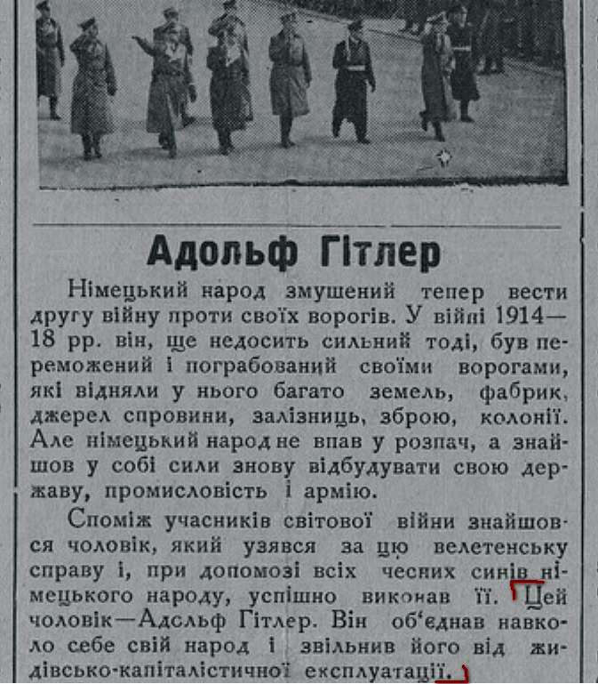 Начиная с самых первых номеров большое внимание уделялось пиару Адольфа Гитлера, который “об’єднав навколо себе свій народ і звільнив його від жидівсько-капіталістичної експлуатації”,