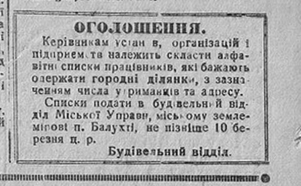 Строительный отдел Городской Управы формировал списки желающих получить землю для ведения подсобного хозяйства.