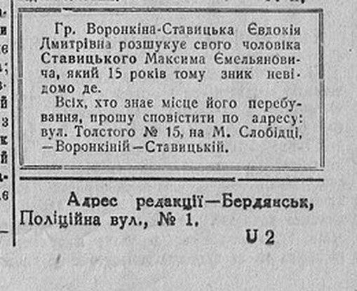 Особый интерес представляют публикации частного характера, с помощью которых читатели пытались отыскать, кто пропавшего мужа, а кто и забытые очки.