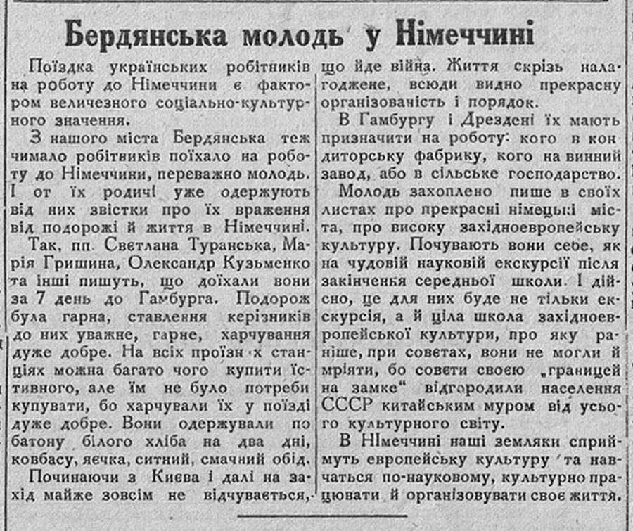 Газетчики из “Світанка” всячески убеждали бердянцев в преимуществах жизни и работы в Германии.