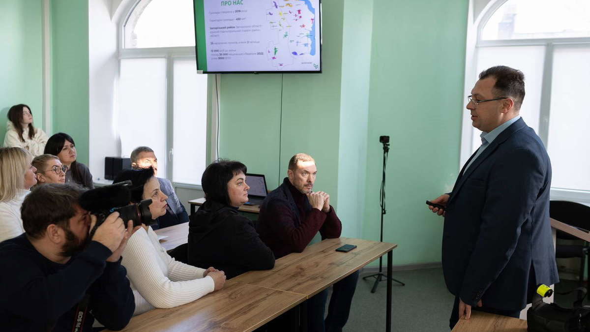 Заступник Широківського сільського голови Дмитро Свіркін розповів гостям про забезпечення житлом внутрішньо переміщених осіб та про проєкти, які змогли реалізувати під час війни. Загалом від повномасштабного вторгнення Широківська громада стала прихистком для майже 10 тисяч внутрішньо переміщених осіб.