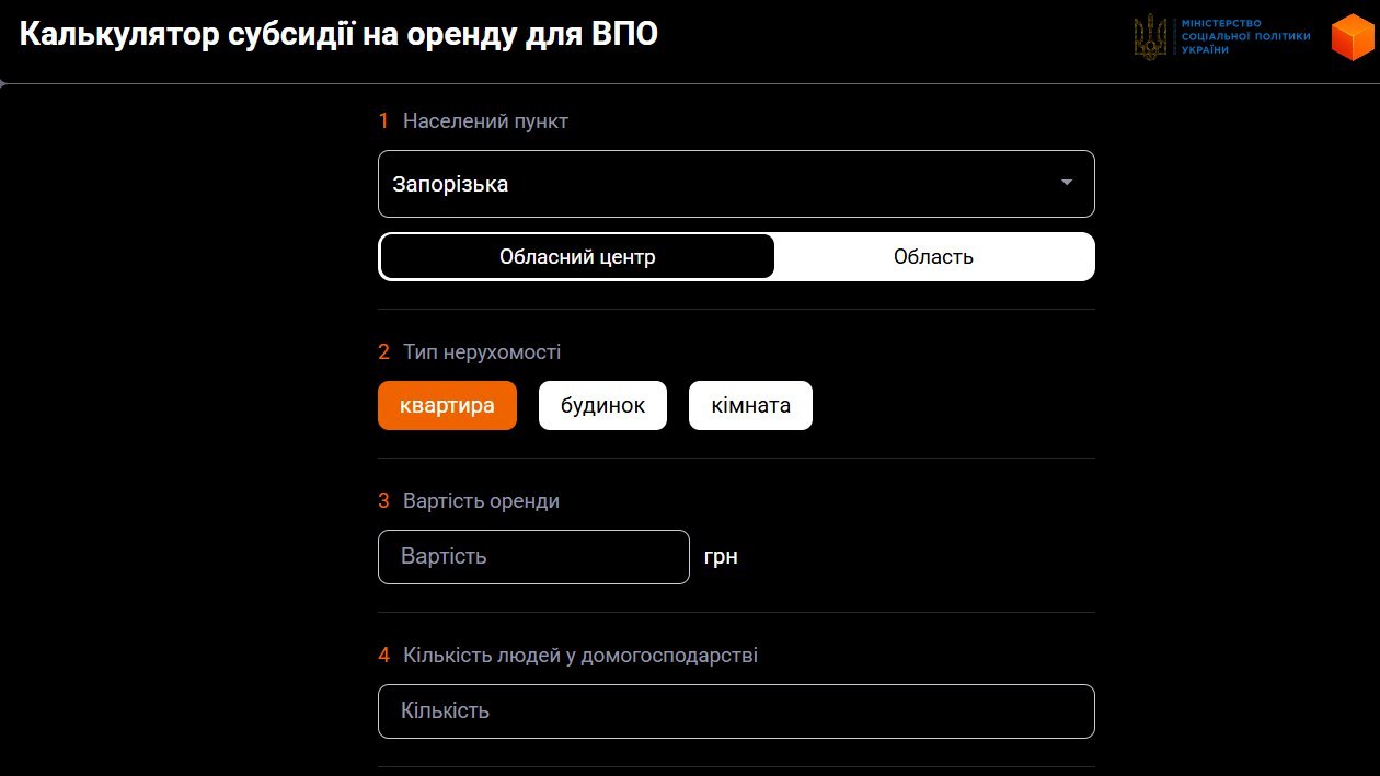 В Україні створили онлайн-калькулятор для обрахування розміру субсидії на оренду житла для ВПО