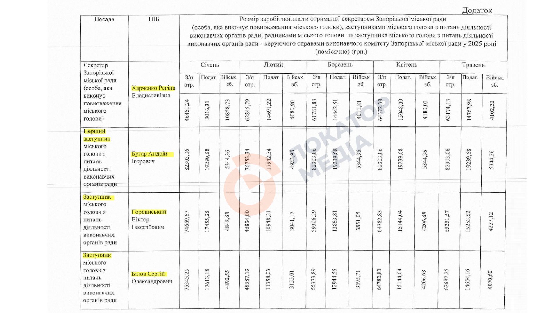 «Локатор-Медіа» з’ясувало, які зарплати отримує керівництво Запорізької міської ради. У відповідь на наш інформаційний запит в.о. міського голови Регіна Харченко повідомила, що у січні-травні 2025 року вона заробила 298 625 грн (в середньому 59,7 тисяч грн на місяць).